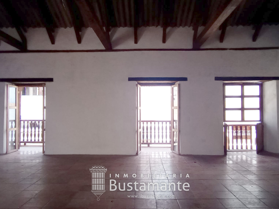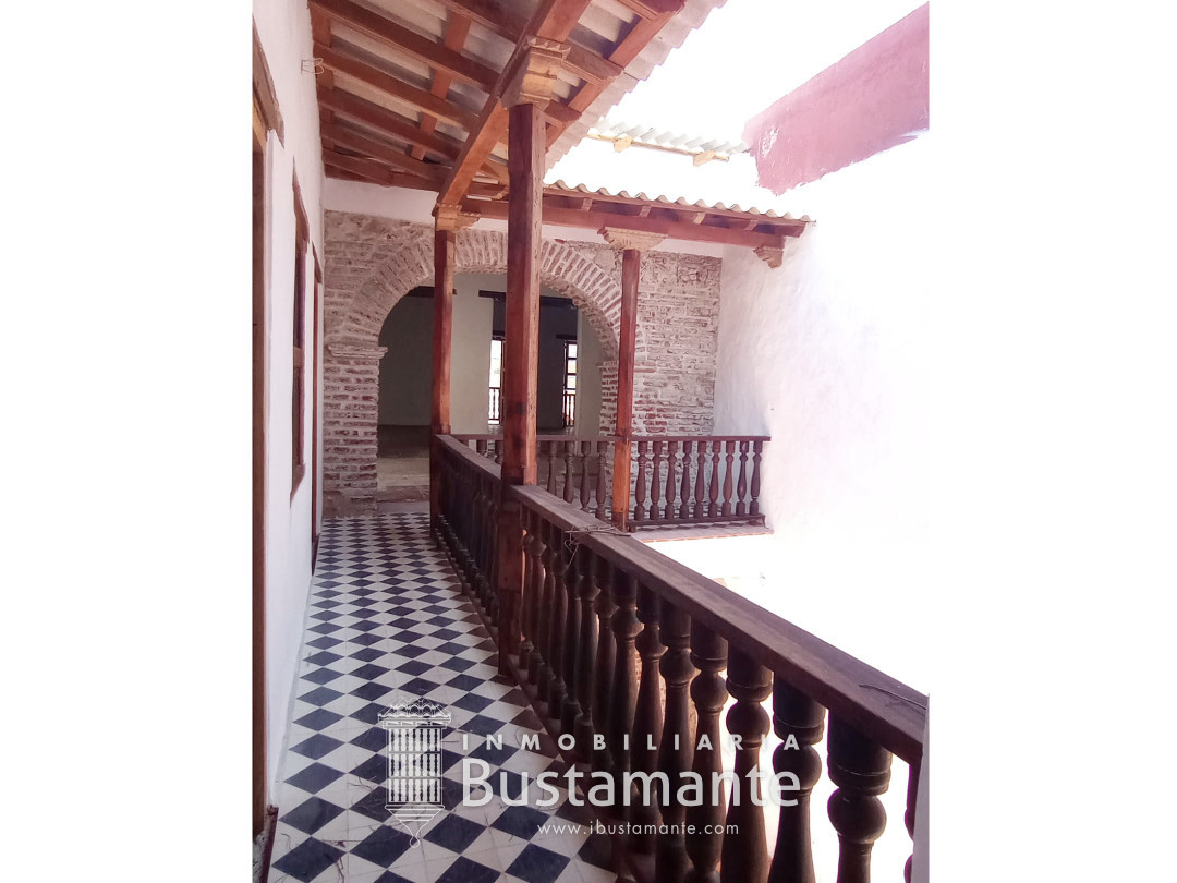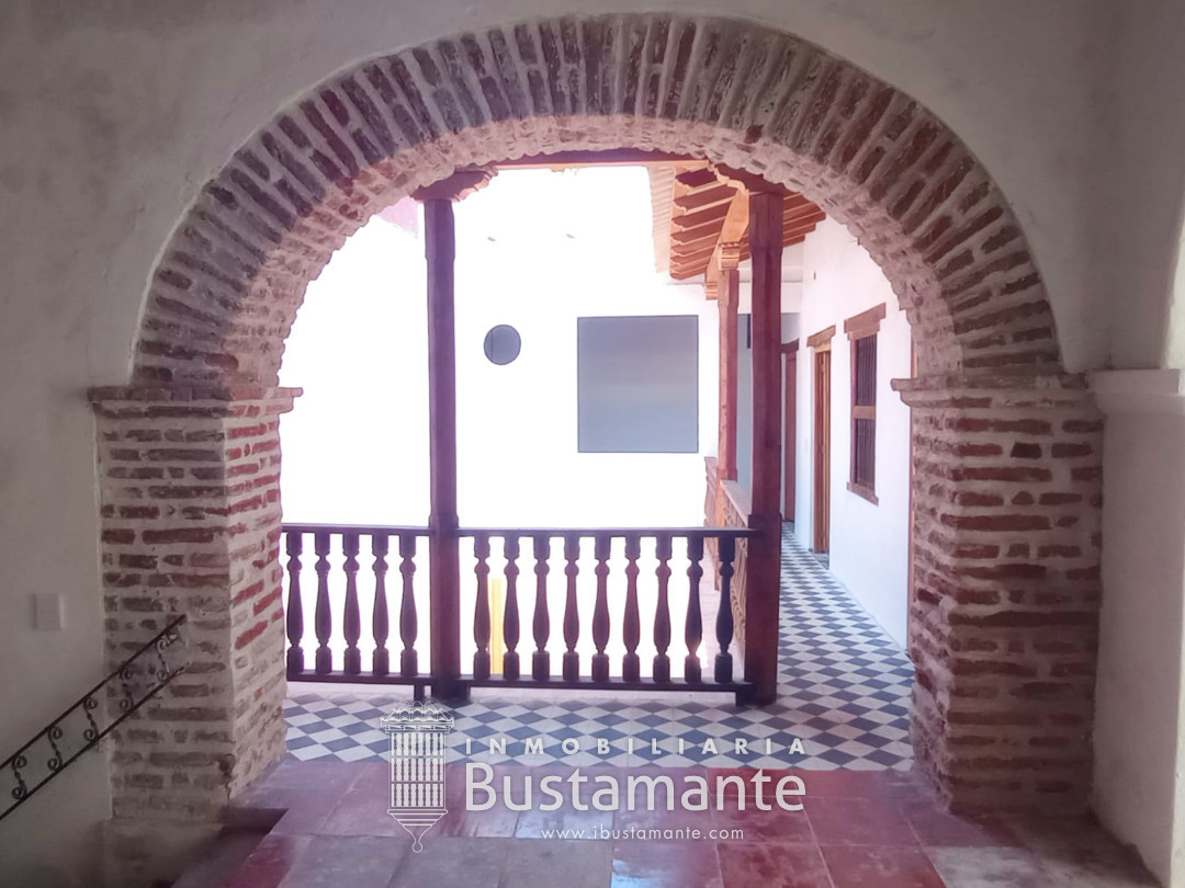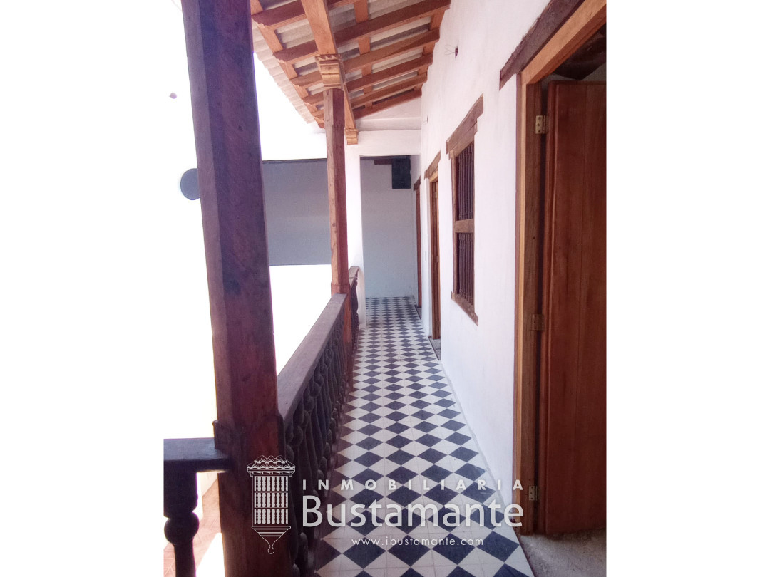 - Un pasillo colonial con baldosas a cuadros y barandas talladas añade un toque de tradición y elegancia